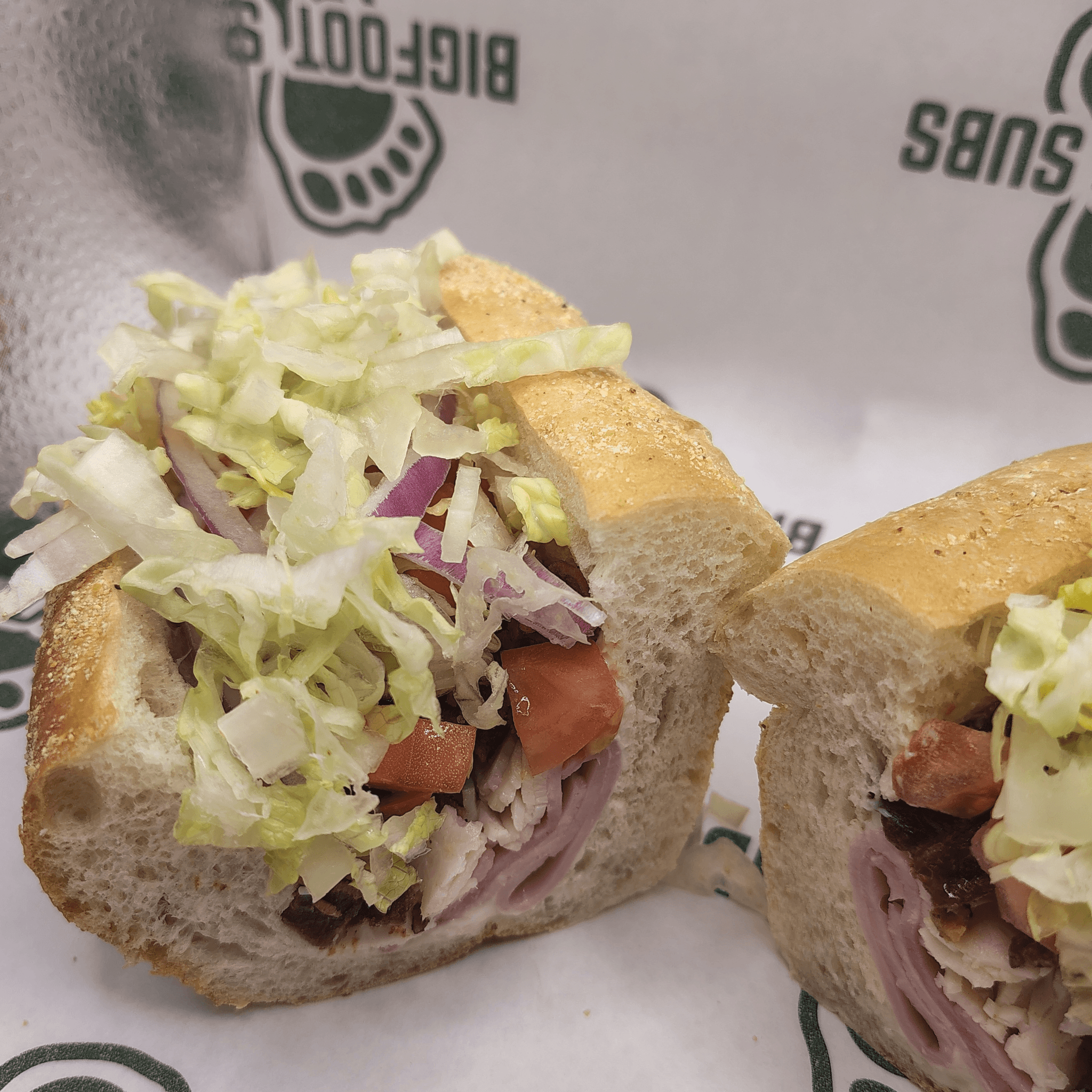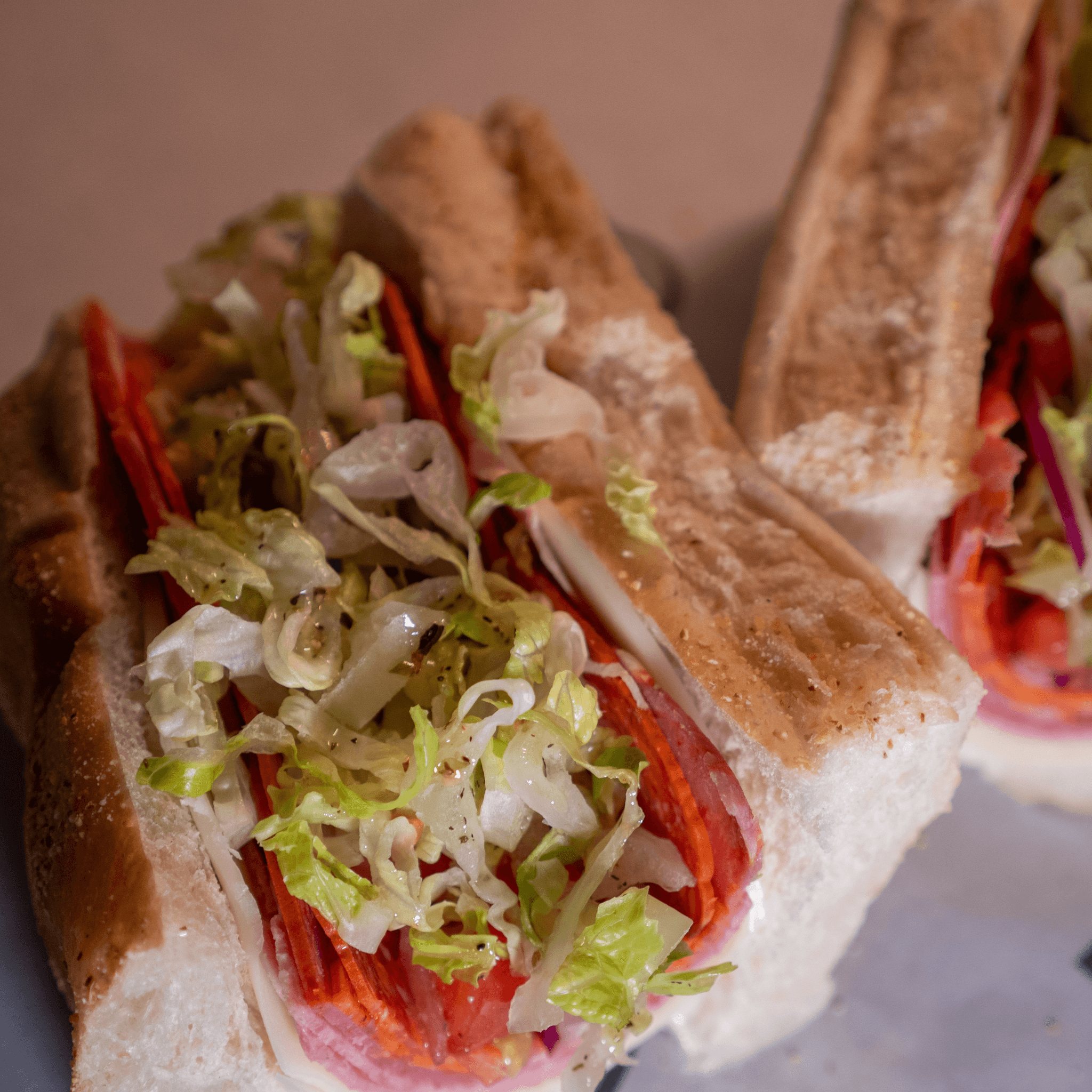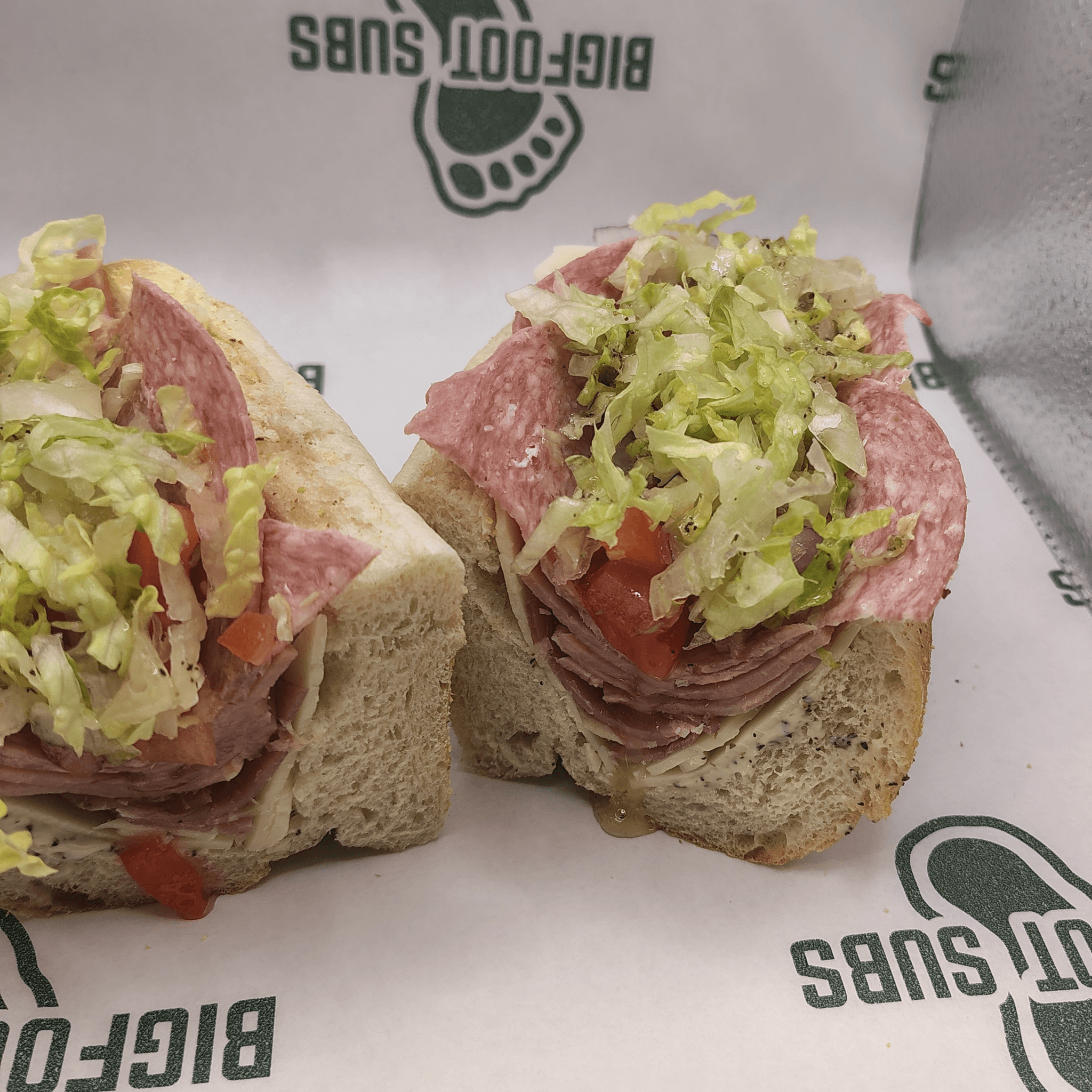 Pepperoni, genoa salami, cappy ham, sharp provolone, mayo, hot pepper blend, lettuce, tomato, red onion and culinary lube.