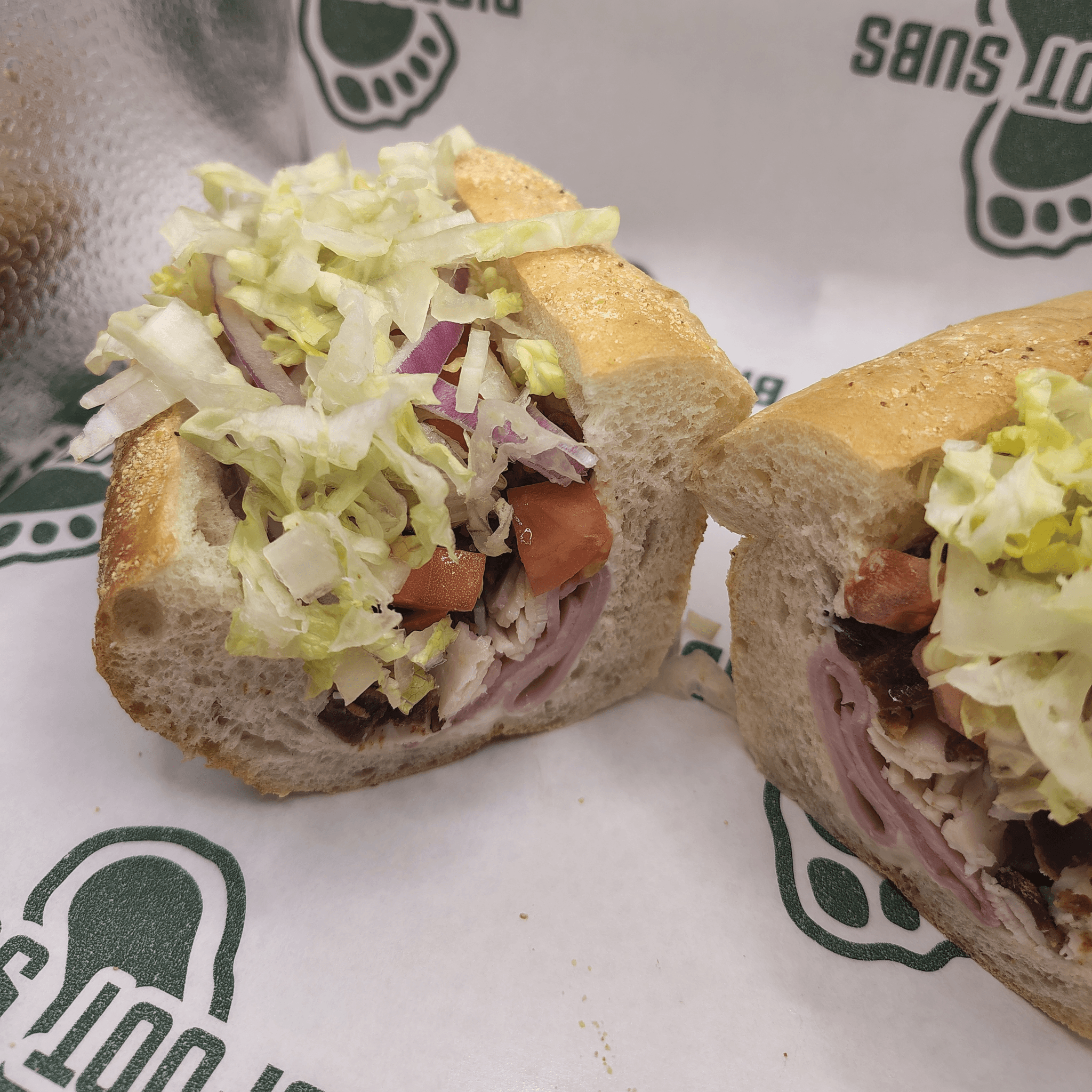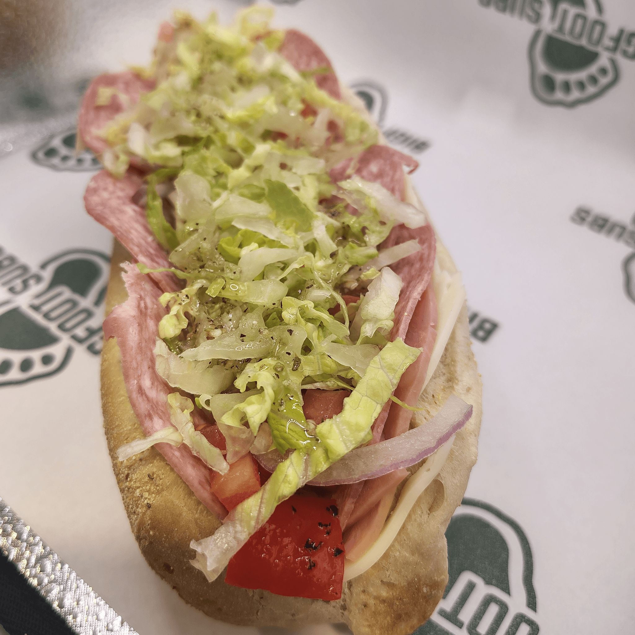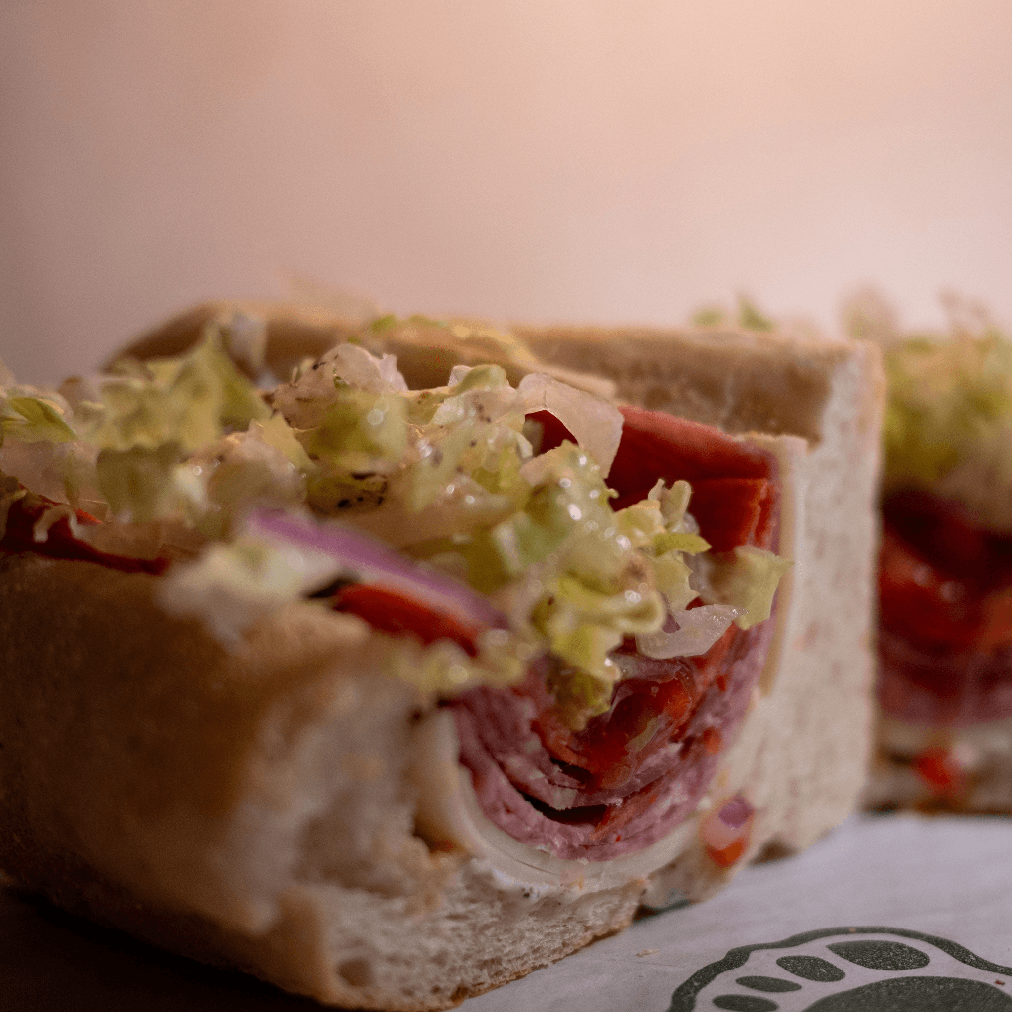 Pepperoni, genoa salami, cappy ham, sharp provolone, mayo, hot pepper blend, lettuce, tomato, red onion and culinary lube.