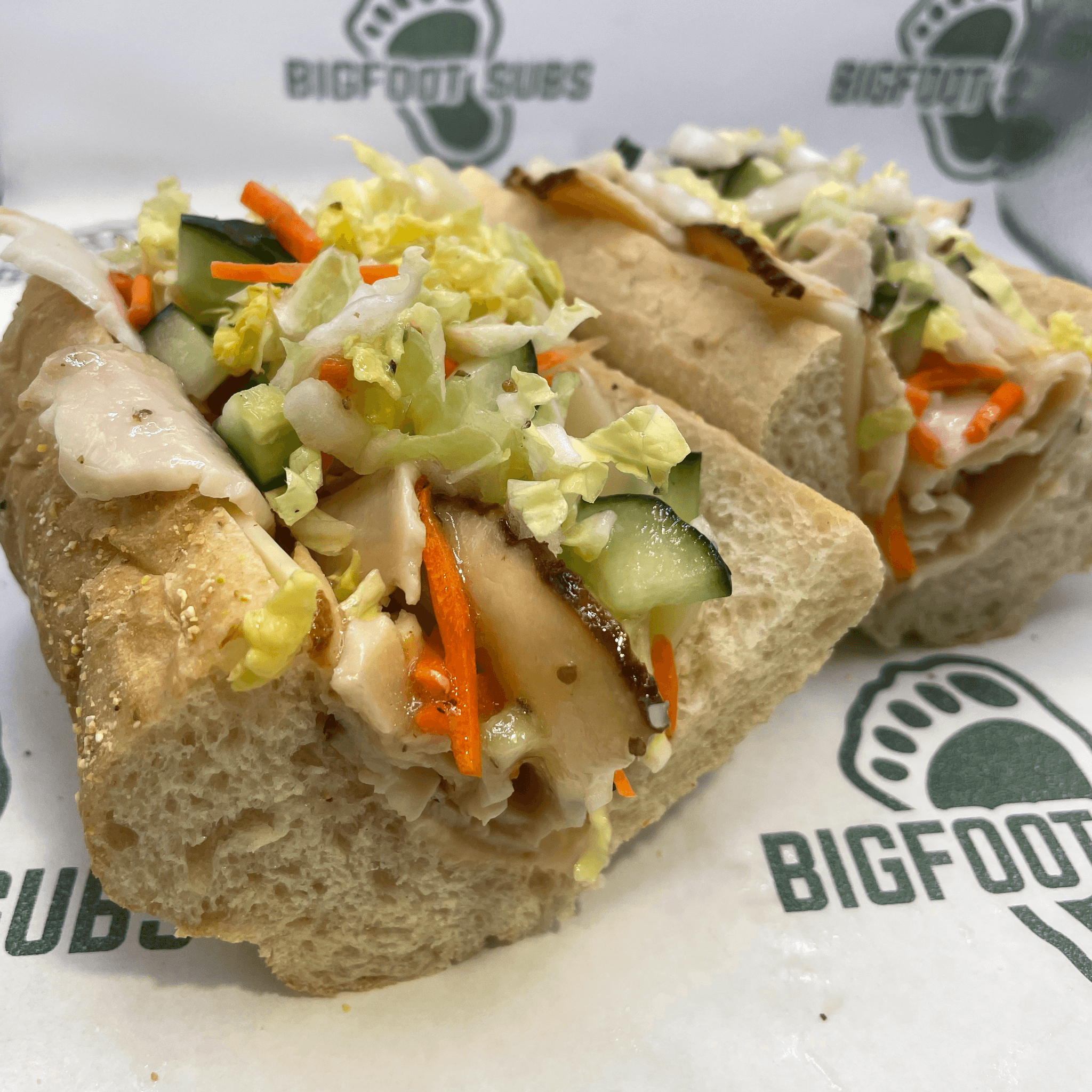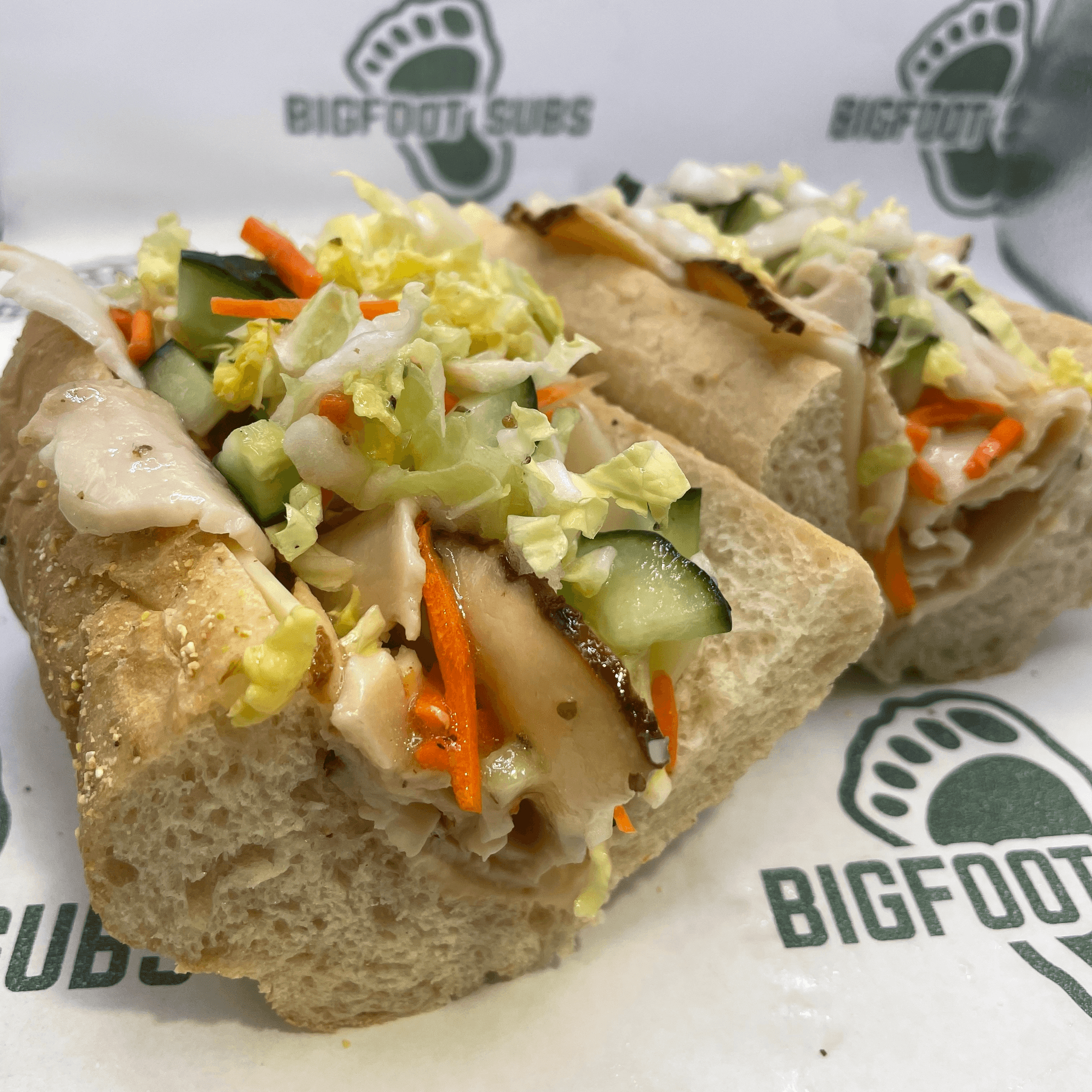 Ichiban teriyaki chicken, carrots, cucumbers, napa cabbage, Swiss cheese, sriracha mayo & citrus vinaigrette