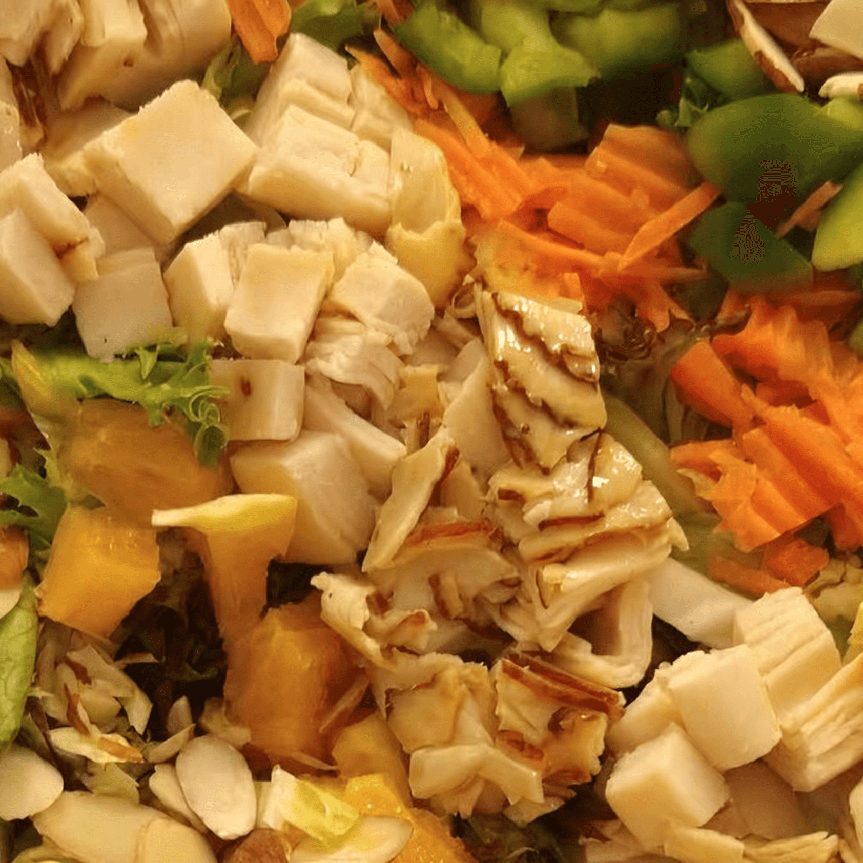 Mixed greens & napa cabbage blend topped with ichiban teriyaki chicken, carrots, oranges, bell peppers & toasted almonds with citrus vinaigrette