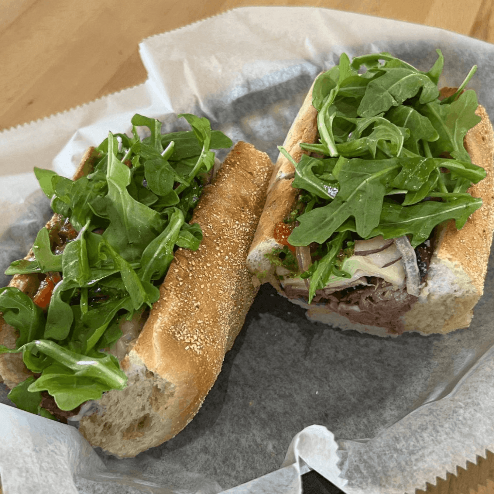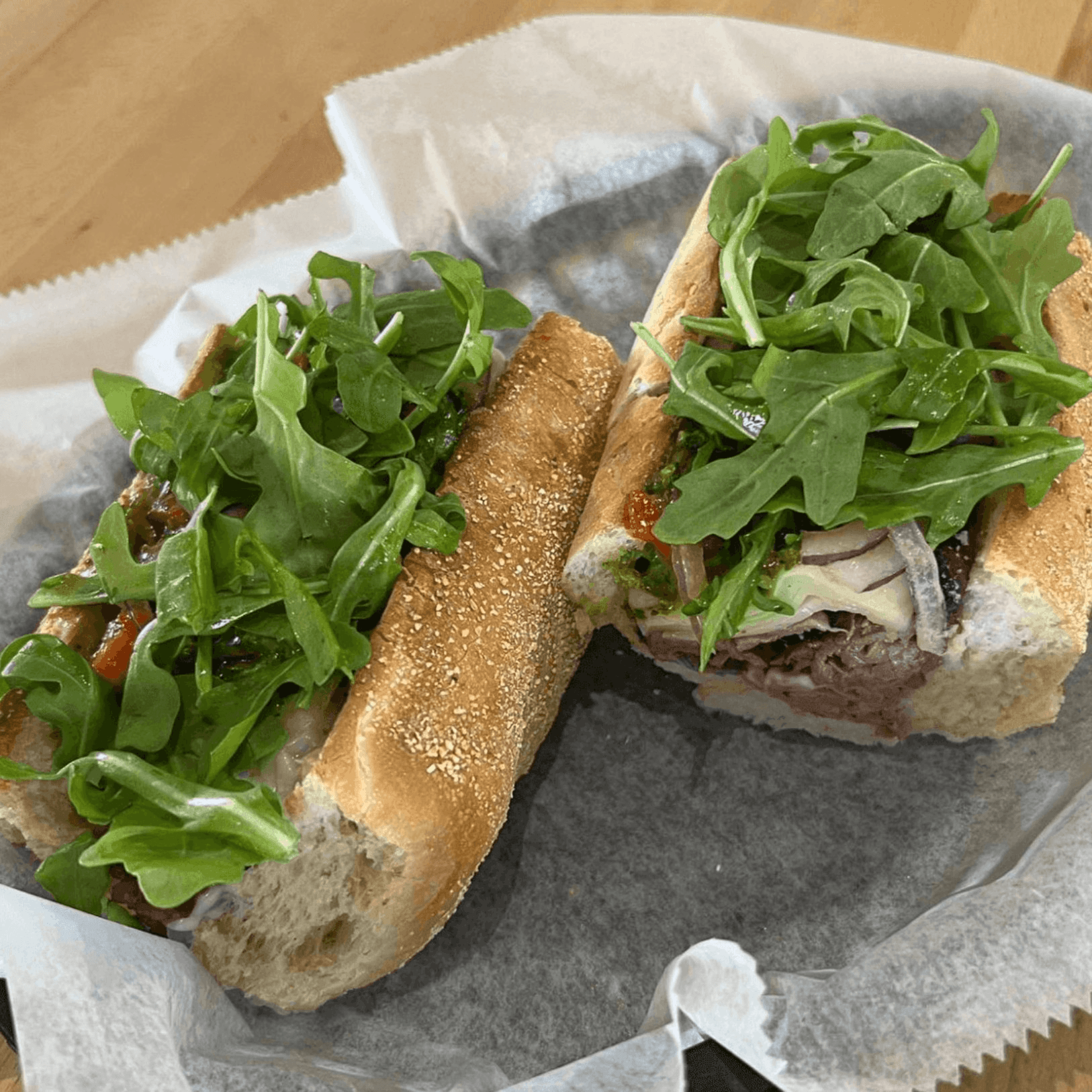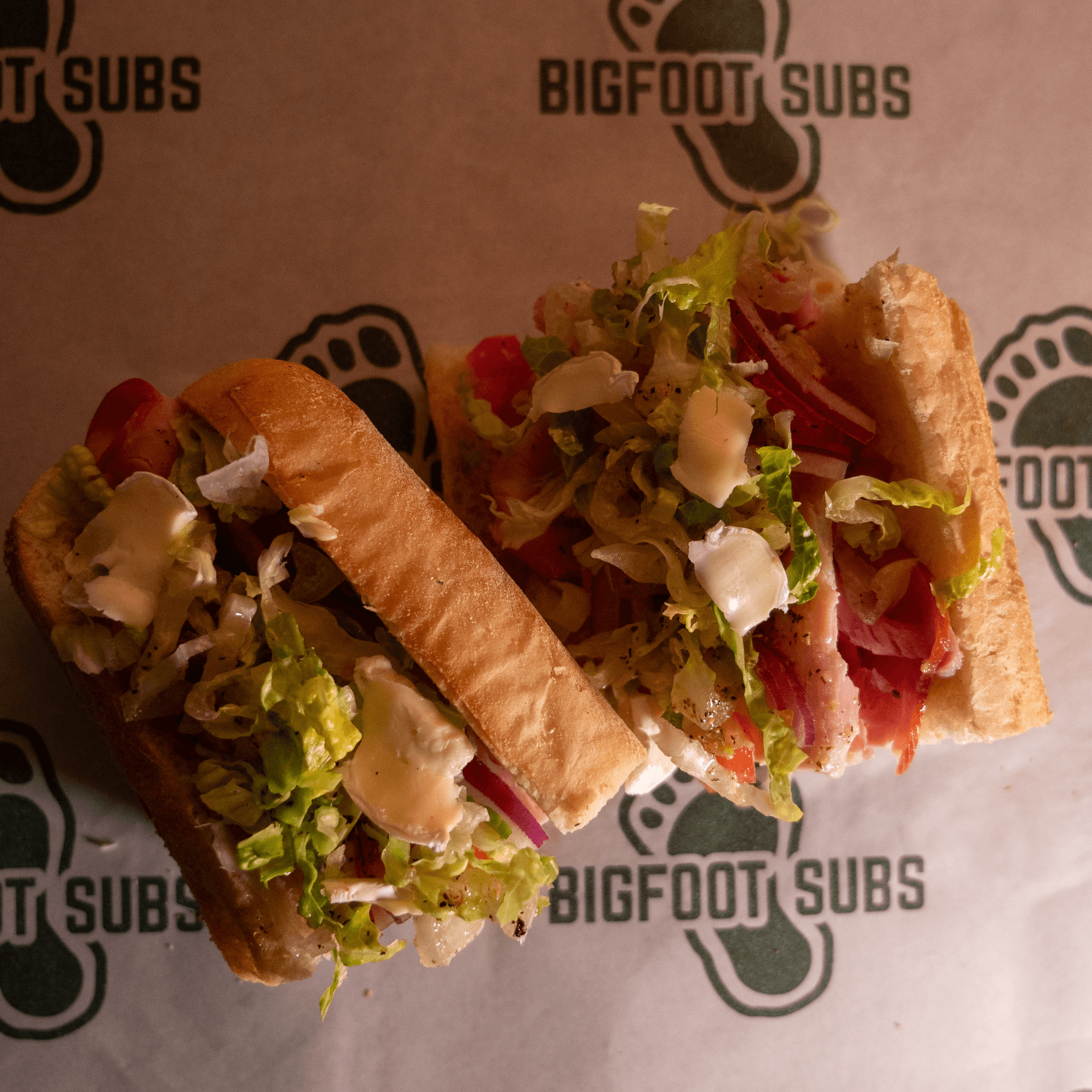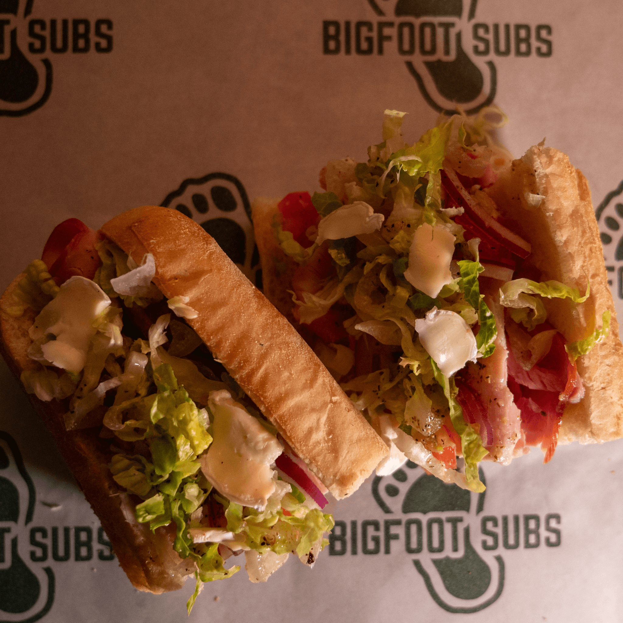 Hot sopressata, pepperoni, genoa salami, sharp provolone, hot pepper blend, red onions, tomatoes, shredded lettuce, basil mayo & culinary lube