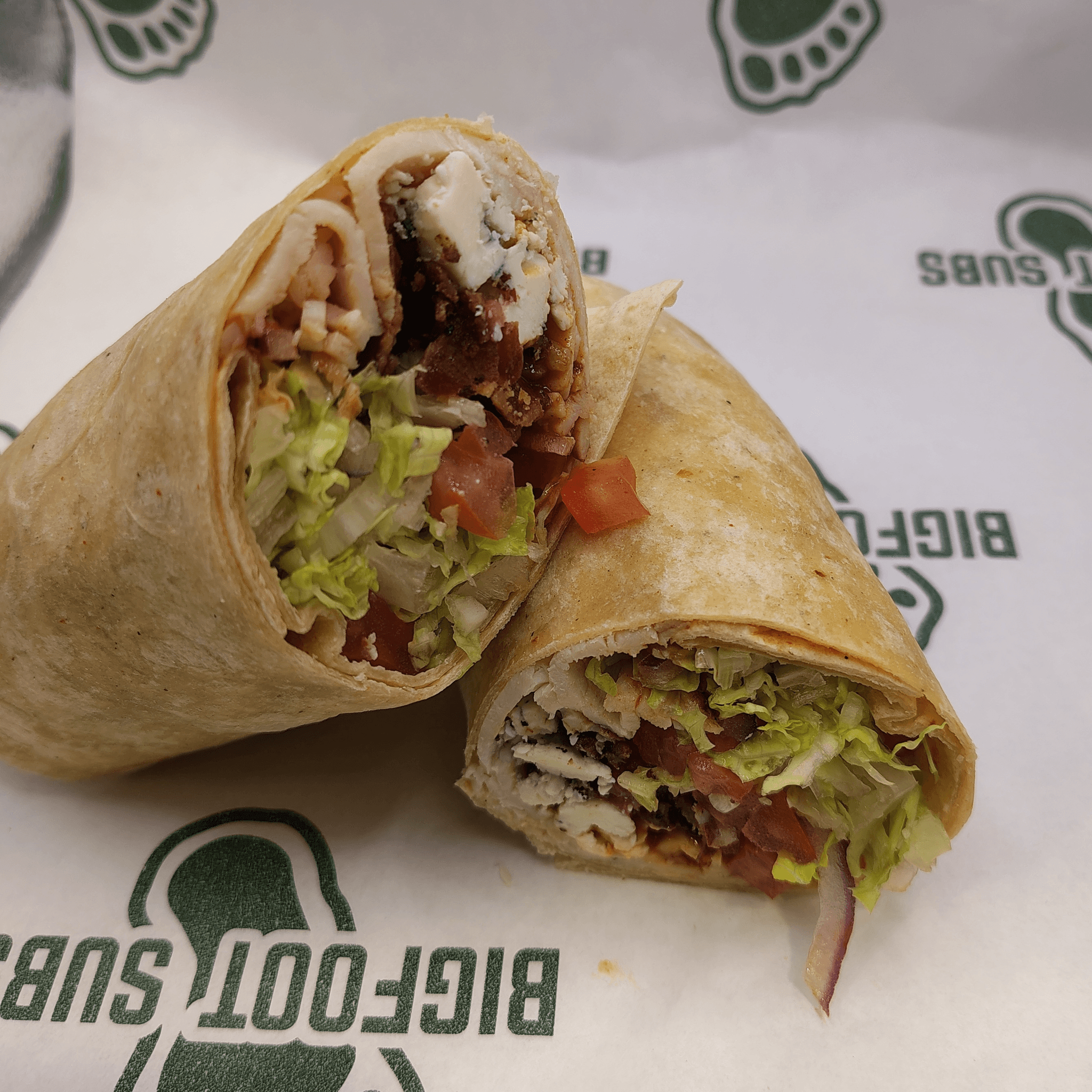 Blazing buffalo chicken, bacon, blue cheese crumbles and Kimball's house sauce, romaine, tomato & red onion