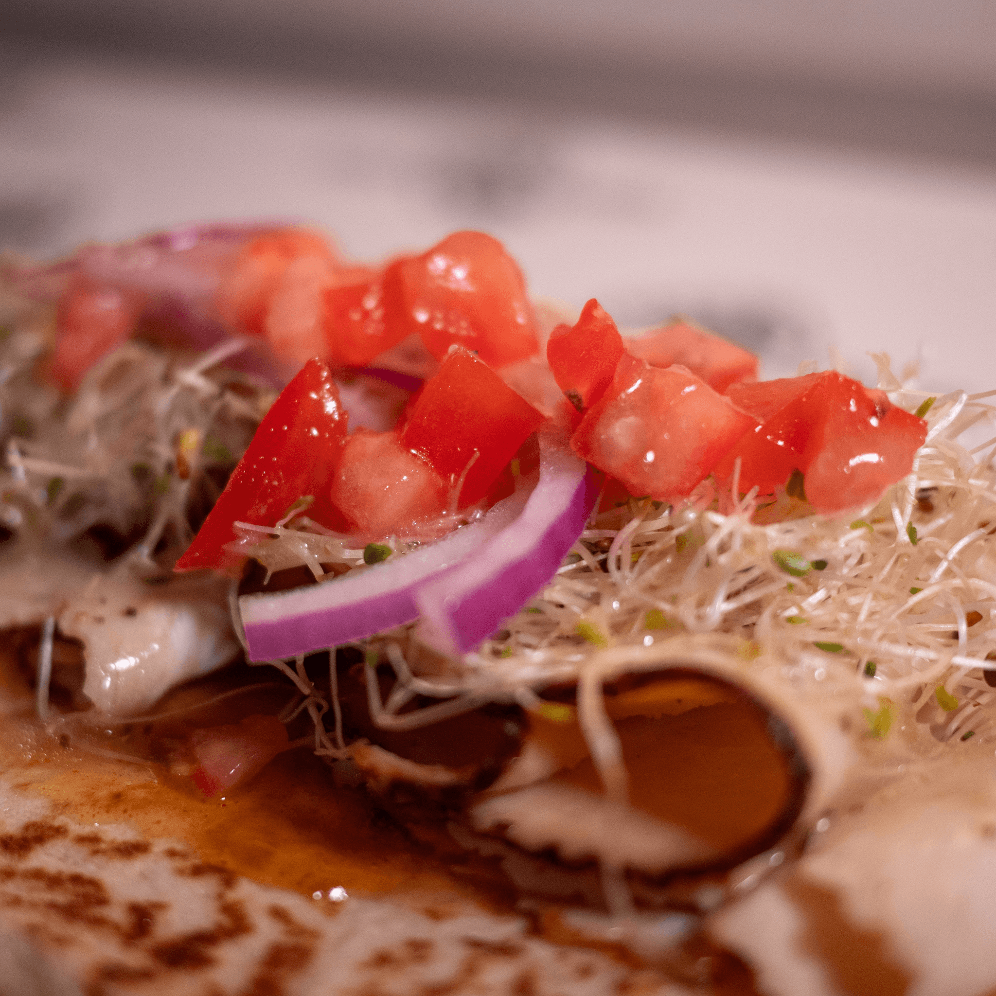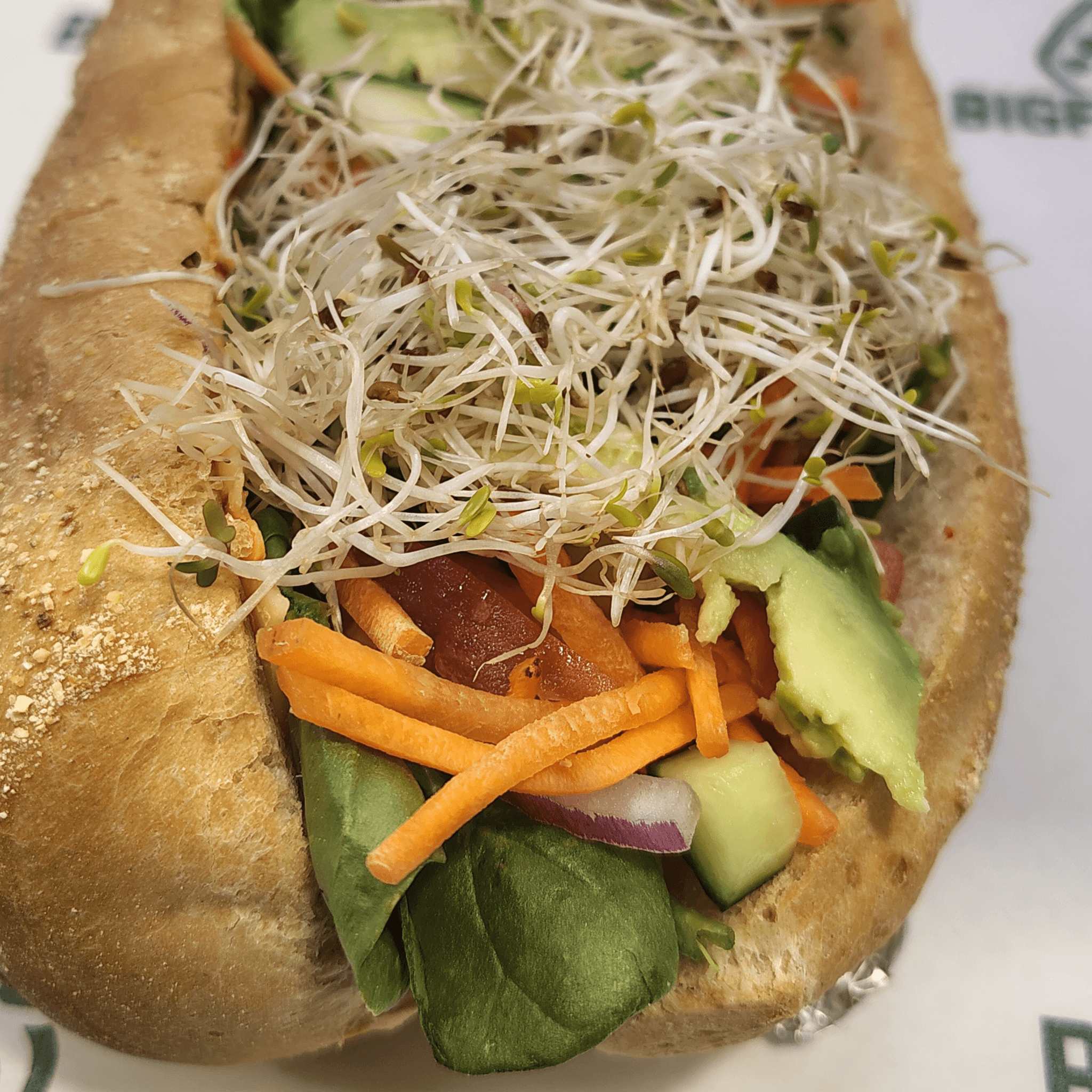 Hummus, choice of cheese, sprouts, avocado, tomatoes, spinach, cucumbers, red onions, carrots, mayo & culinary lube