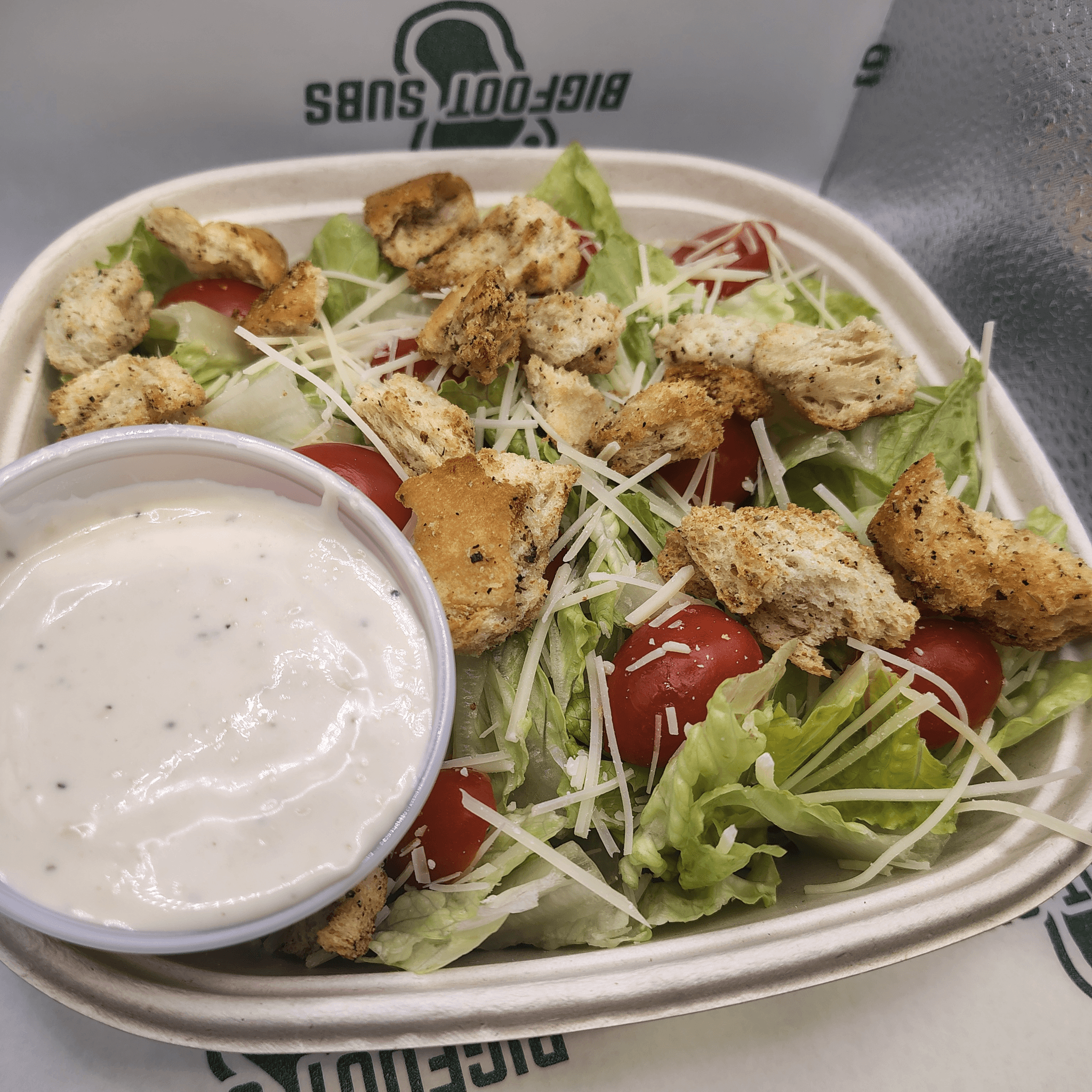 Romaine lettuce, grape tomatoes, shredded parmesan cheese & croutons with caesar dressing